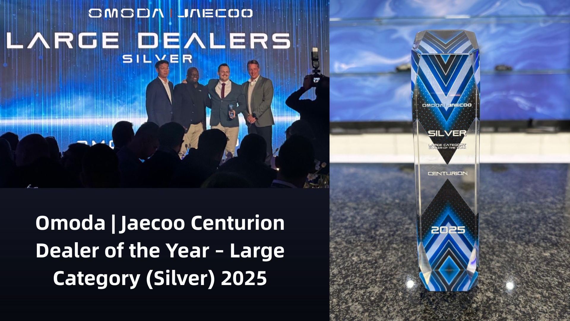 The Auto Investments Motor Group proudly congratulates the Omoda|Jaecoo Centurion dealership on winning the Dealer of the Year β Large Category (Silver) at this year's Annual Dealer Conference. This prestigious award highlights their outstanding performance, exceptional customer service, and dedication to excellence in the automotive industry.