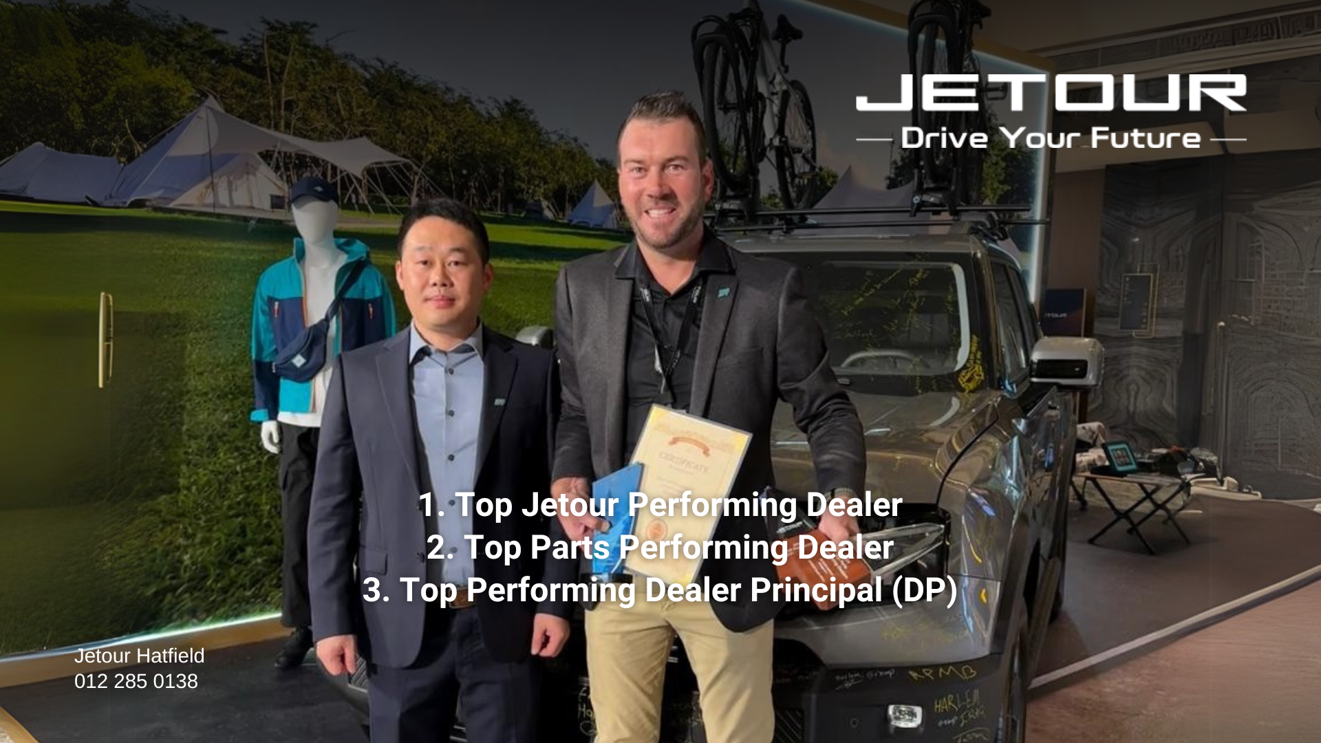 Celebrating Jetour Hatfieldβs Outstanding Achievements: Top Dealer, Top Parts Dealer and Dealer Principal Awards.